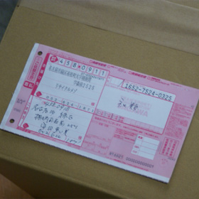 当店に買取依頼のご連絡をいただいた後に可能な場合のみ当店からお客様宅に段ボール箱を宅配いたします。中に買い取り申込書と返送用の着払い伝票が入っていますのでご注意ください。